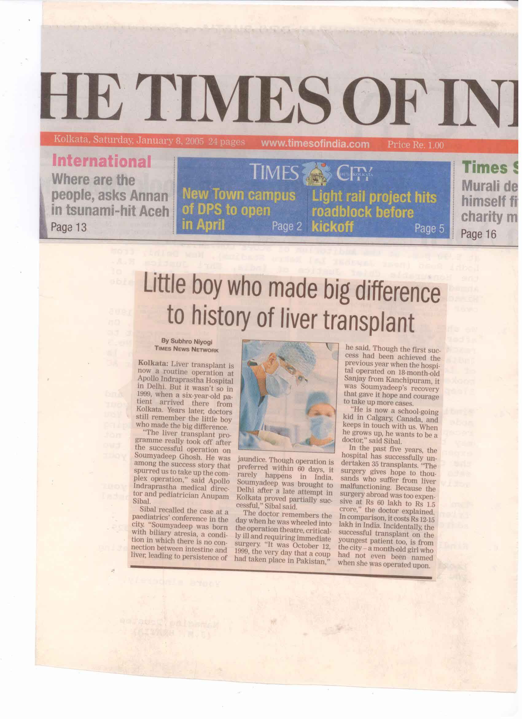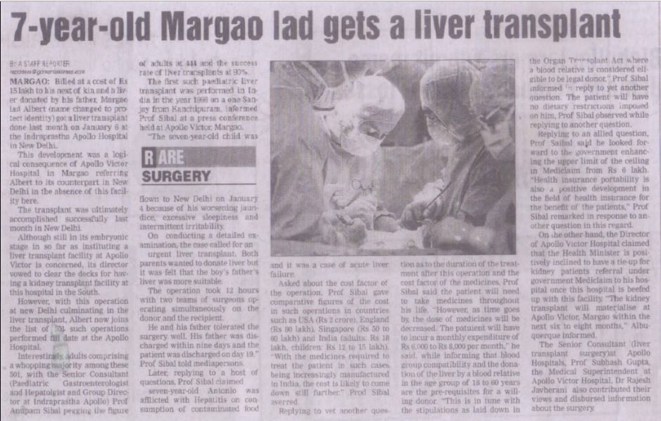 Liver transplant is now routine operation at Apllo Indraprastha Hospital in Delhi. But it wasn’t so in 1999, when a six-years-old patient arrived there from Kolkata.