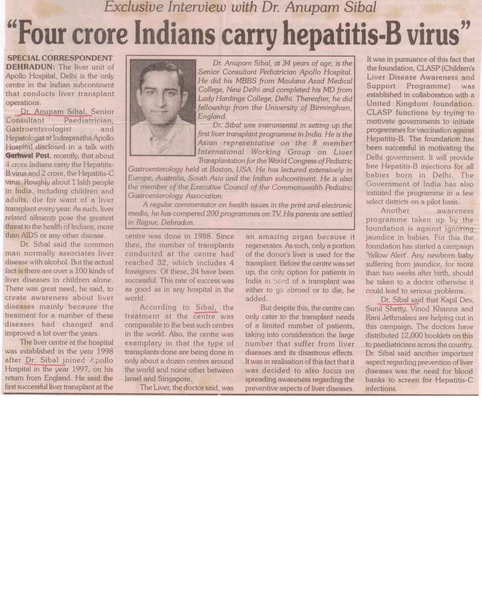 The liver unit of Apollo Hospital, Delhi is the only center in the india subcontinent that conduct liver transplant operations.