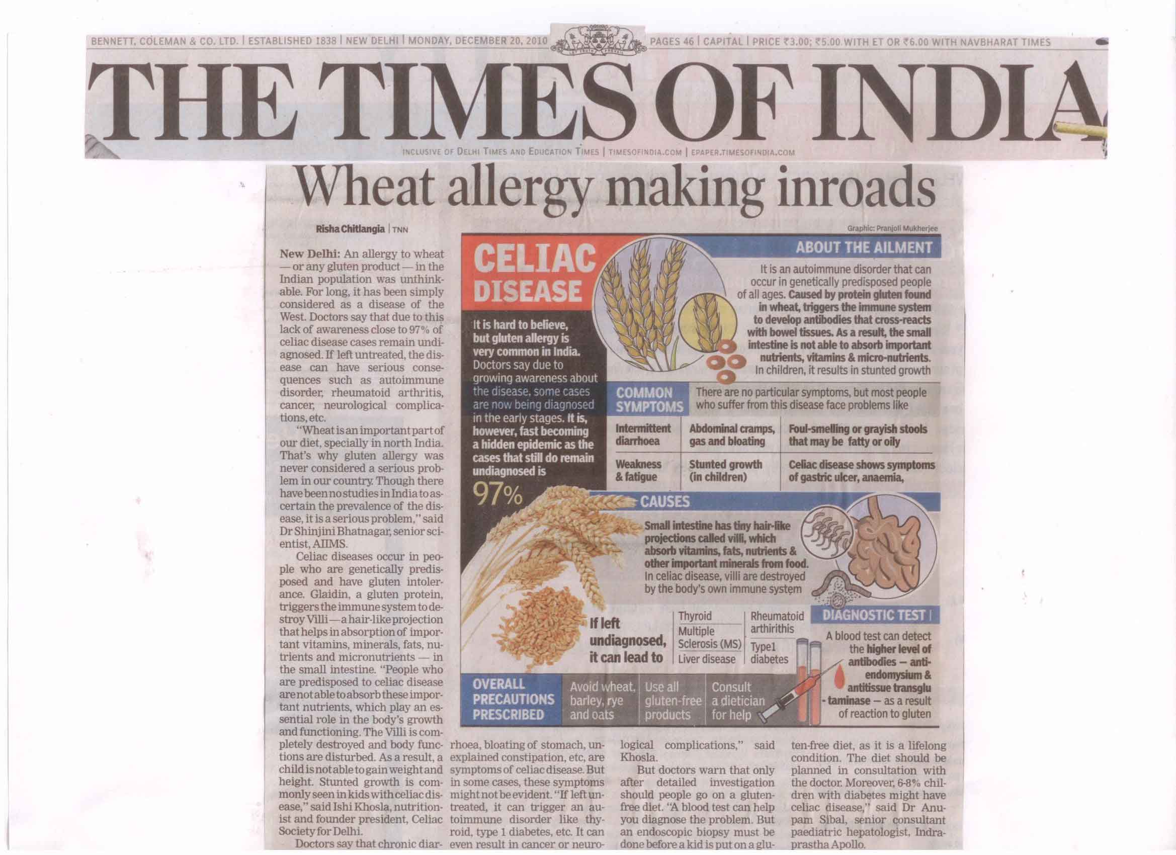 An Allergy to wheat or any gluten product – in the Indian Population was unthinkable. For long, it has been simply consirdered as a disease of the West.