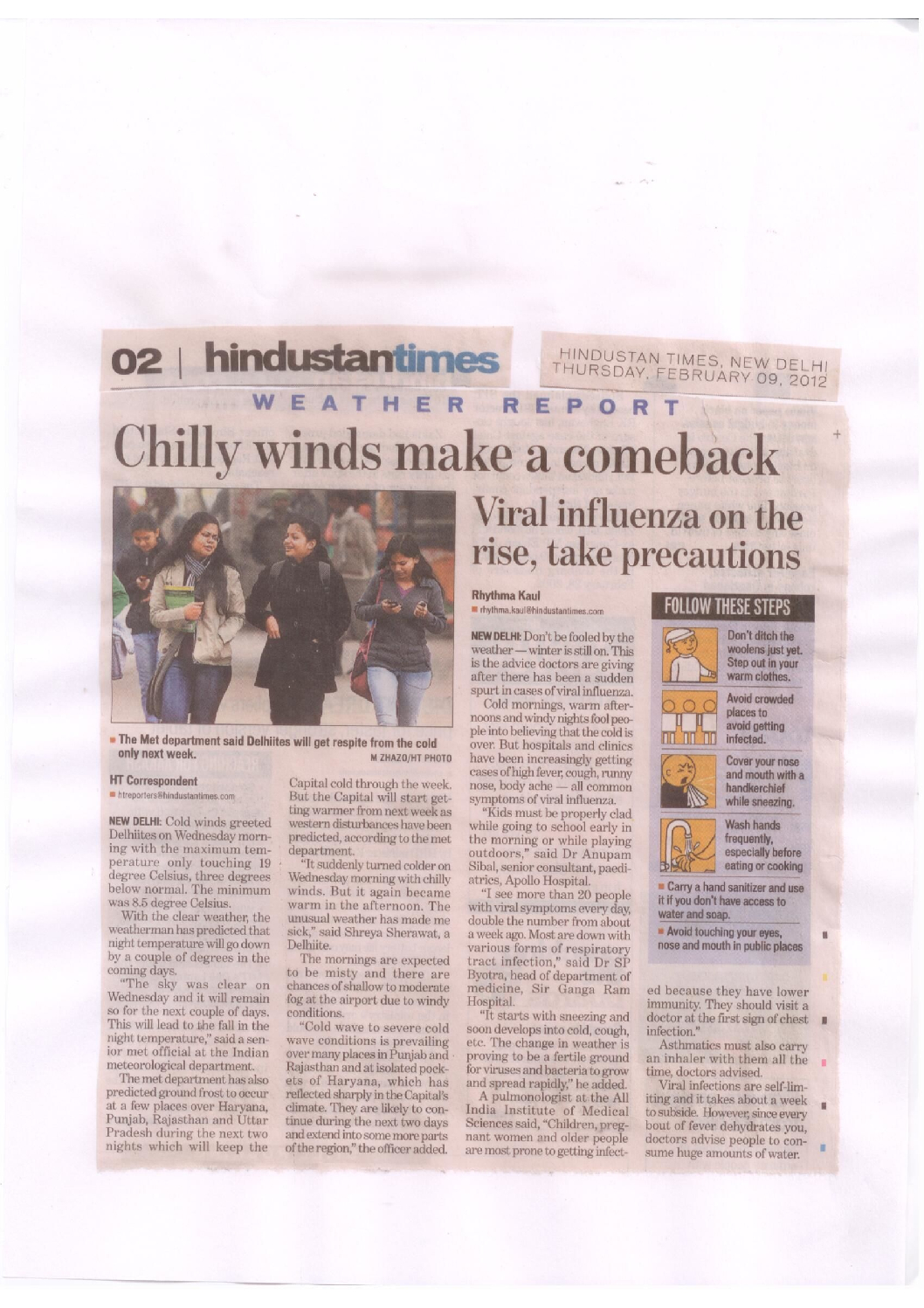 Cold winds greeted Delhiites on Wednesday Morning with the maximum tempreture only touching 19 degrees below normal. The meximum was 8.5 degree celsius.