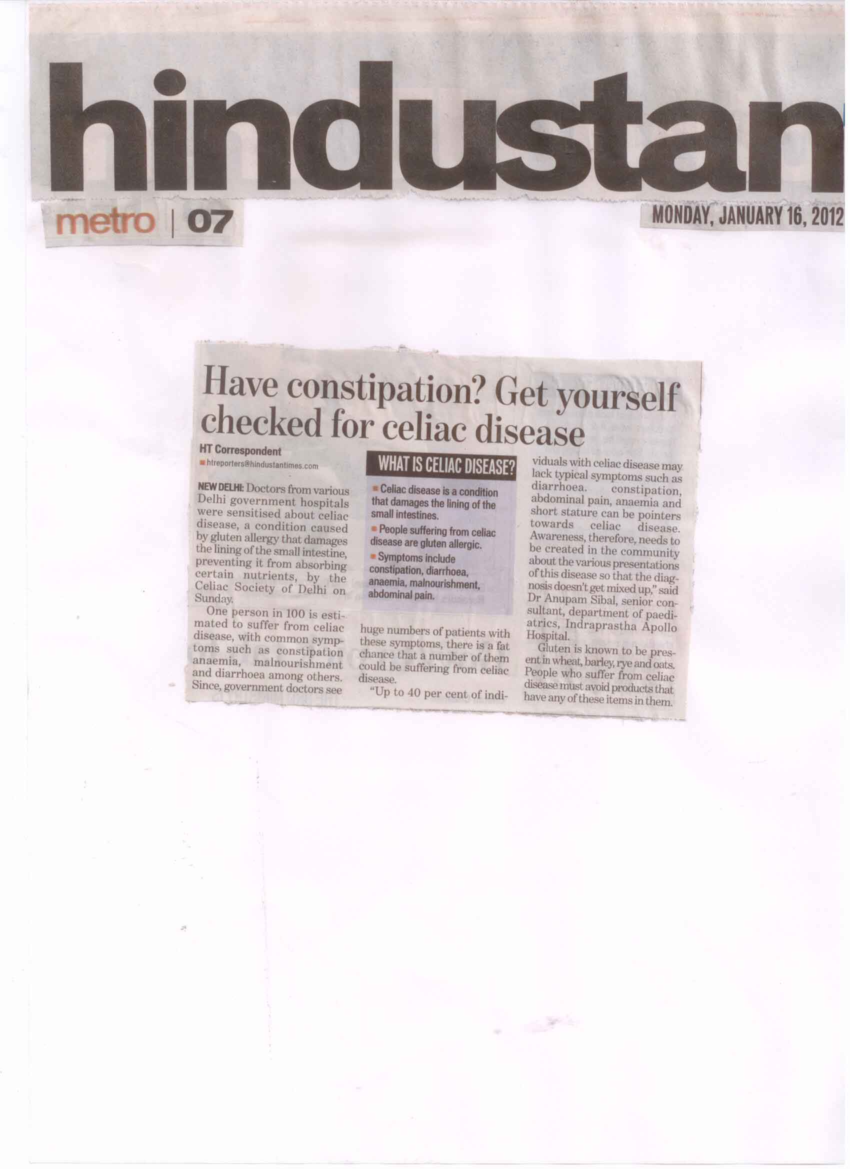Doctors from various Delhi government hospitals were sensitised about celiac disease, a condition caused by gluten allergy that damages