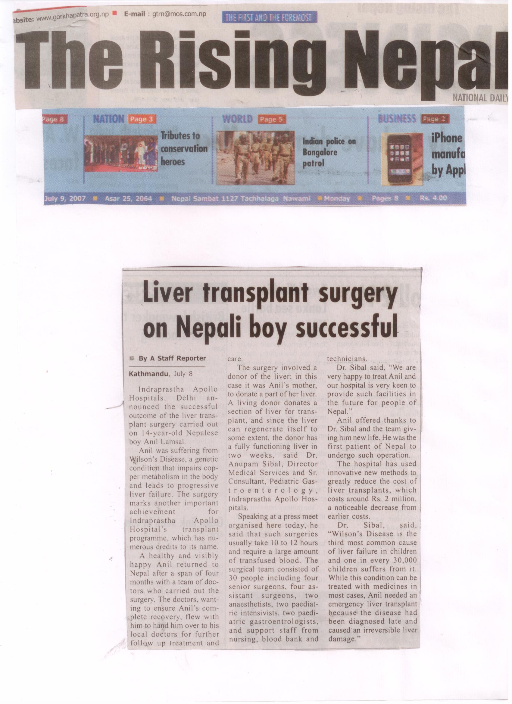 Liver Transplant sergury on nepali boy successful 2007