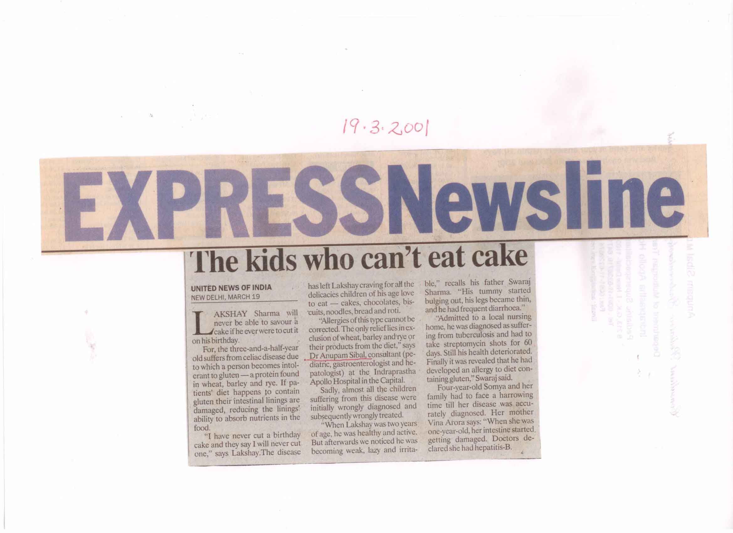 Lakshay sharma will never be able to savour a cake if he ever were to cut It on his birthday. For, the three and a half years old suffers form celiac disease
